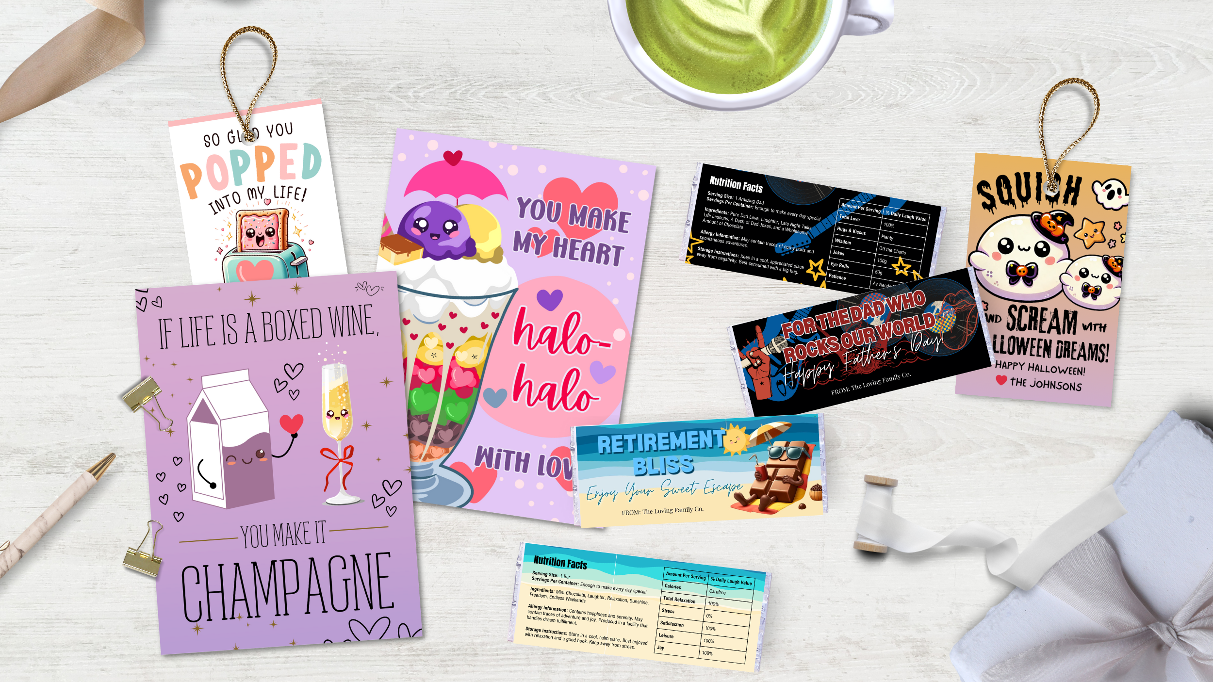 Explore our delightful collection of printables for every gift occasion at Given Crafted Wonders. From balm and bundt cake tags to pop tart, rice krispy, s'mores and soap labels, our unique designs add a personal touch to your presents. Whether it's a boba, candle, chocolate, coffee, cookie, donut, gift card holder, gift certificate, lotion/sanitizer/scrub, lotto, mint, nuts, pie, plant, popcorn, or squishmallow, you'll find the perfect printable to make your gift memorable. Shop now for customizable and ready-to-print options that make gifting effortless and special!