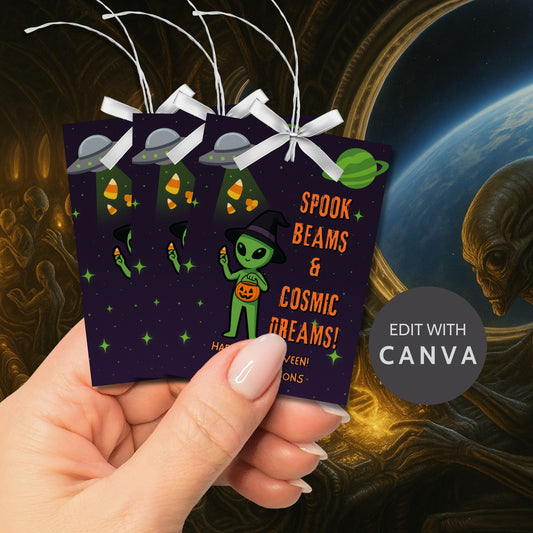 Alien Halloween Gift Tag – Printable & Editable | Spook Beams & Cosmic Dreams