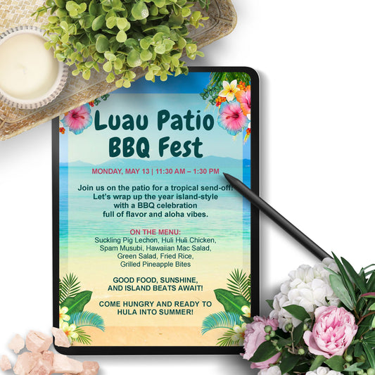 Editable Luau BBQ Fest Flyer Template – Tropical Summer Party Invite Design