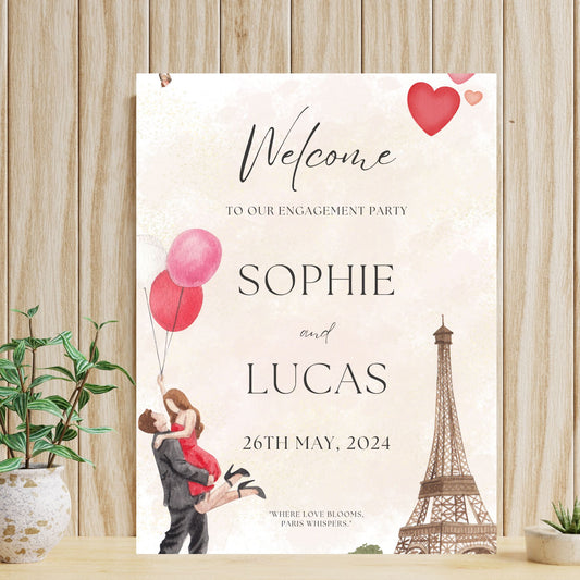 Editable Paris Engagement Party Poster – Canva Template 24x36 | Romantic Eiffel Tower Welcome Sign