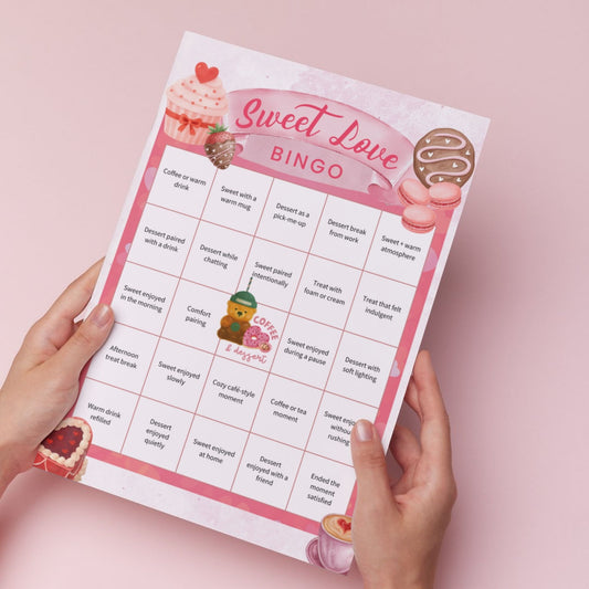 Sweet Love Bingo Printable | Cozy Dessert & Self-Care Bingo Game | Family, Kids & Couples Activity | Year-Round Printable (8.5x11 PDF)