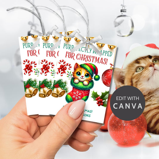 Purr-fectly Wrapped Christmas Gift Tags | Printable & Editable Cat Holiday Tags | Printable & Editable Pet Holiday Tags | Given Crafted Wonders