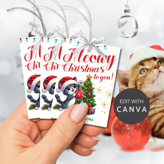 Meowy Christmas Gift Tags | Printable & Editable Cat Holiday Tags | Printable & Editable Pet Holiday Tags | Given Crafted Wonders