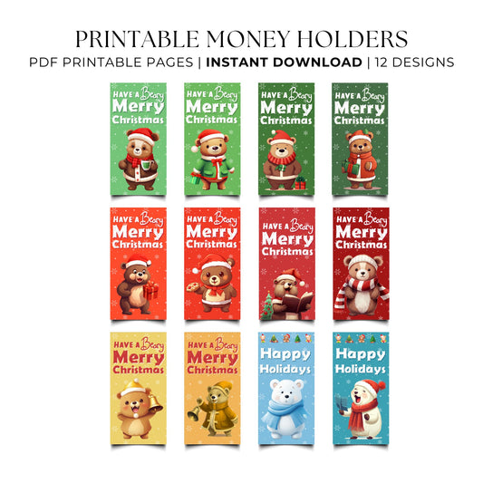 Printable Christmas Money Holders – 12 Cute Bear Designs for Holiday Cash & Gift Cards | Given Crafted Wonders