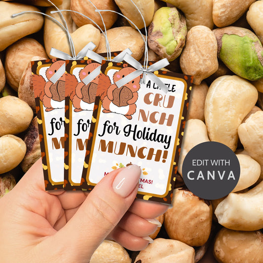 Printable & Editable Christmas Gift Tags – A Little Crunch for Holiday Munch! | Printable & Editable Holiday Valentine Teacher Tags | Appreciation Tags | Given Crafted Wonders