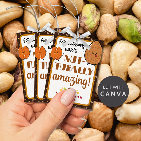 Nut-turally Amazing Editable Gift Tags for Nut-Themed Treats | Printable & Editable Holiday Valentine Teacher Tags | Appreciation Tags | Given Crafted Wonders