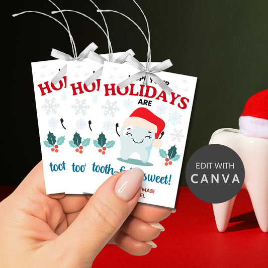 Flossome & Bright Dentist-Themed Holiday Gift Tags – Printable & Editable | Given Crafted Wonders