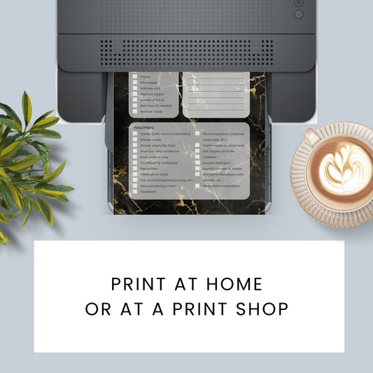 Printable Dorm Checklist - Black Marble Design | College Essentials PDF