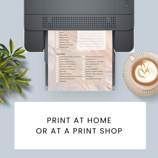 Printable Dorm Checklist - Taupe Marble Design | College Essentials PDF
