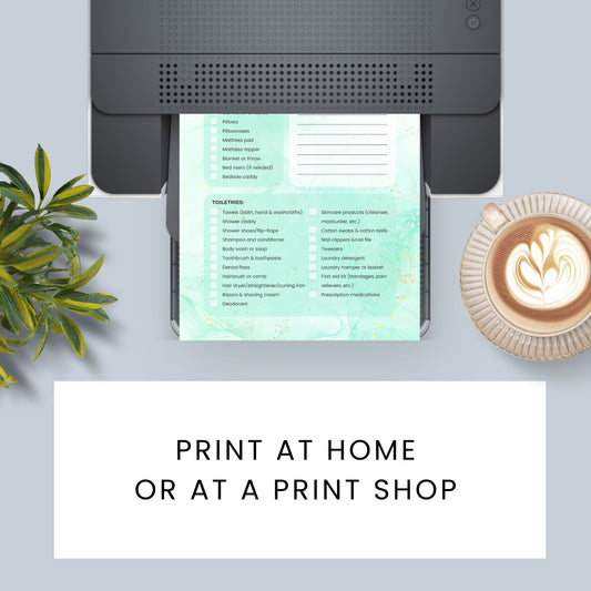 Printable Dorm Checklist - Green Marble Design | College Essentials PDF