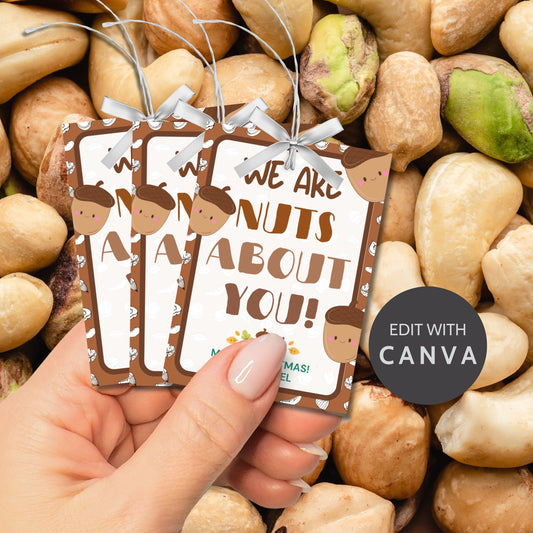 We Are Nuts About You Editable Gift Tags | Perfect for Nut-Themed Gifts | Printable & Editable Holiday Valentine Teacher Tags | Appreciation Tags | Given Crafted Wonders