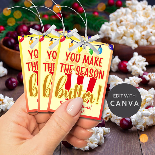 You Make the Season Butter Editable Popcorn Gift Tags for Holiday Treats | Appreciation Holiday Tags | Given Crafted Wonders