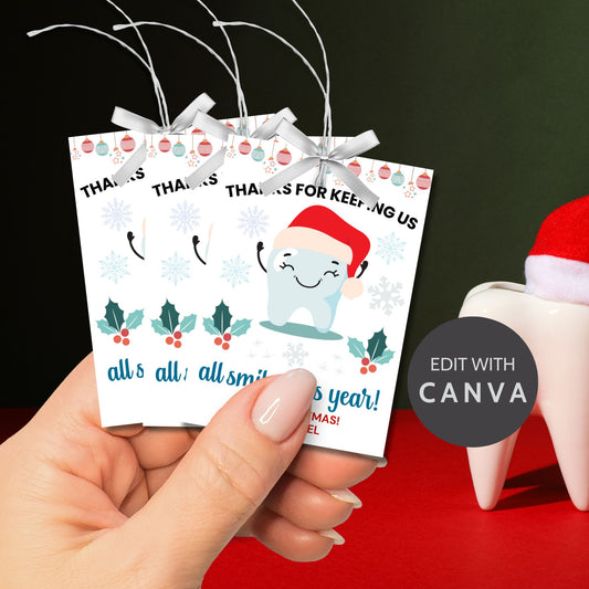 Holiday Gift Tags for Dentists - 'All Smiles This Year!' Editable and Printable | Given Crafted Wonders