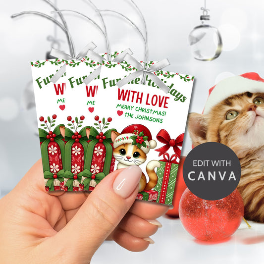 Furry Christmas Wishes Gift Tags | Printable & Editable Cute Cat Holiday Tags | Printable & Editable Pet Holiday Tags | Given Crafted Wonders