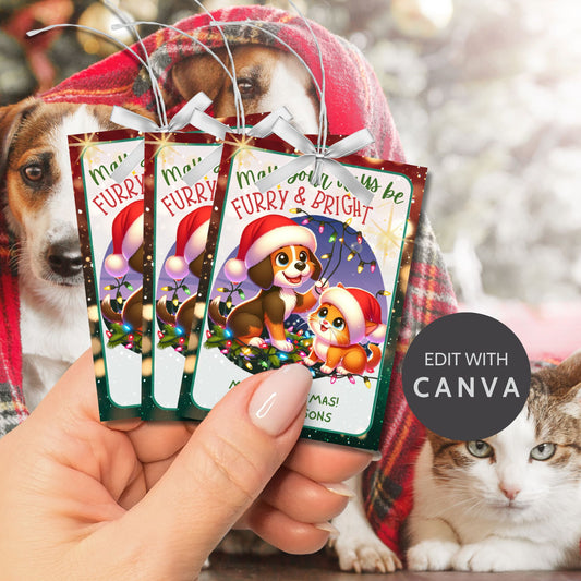 Furry & Bright Gift Tags | Printable & Editable Pet Lover Dog Cat Christmas Tags | Printable & Editable Pet Holiday Tags | Given Crafted Wonders