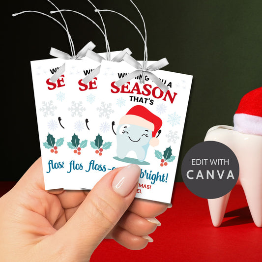 Flossome & Bright Dentist-Themed Holiday Gift Tags – Printable & Editable | Given Crafted Wonders