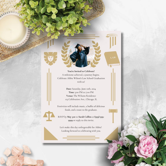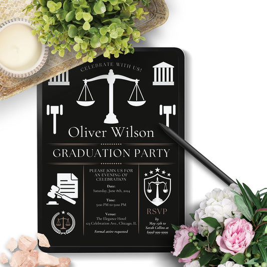 Law School Graduation Invitation Template | Law School Invite Summon | Law School Graduate Evite Announcement | Paralegal Graduation Party