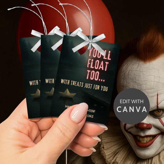 You’ll Float Too Halloween Tags | Editable Balloon Horror Printable | Spooky Gift Tags for Halloween