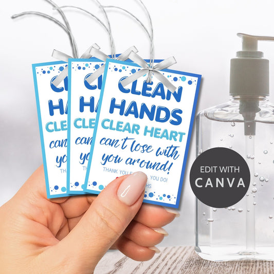 Sanitizer Valentine Printable Editable Tag | Clean Hands Gift Tag Hand Sanitizer Teachers Employee Staff Appreciation Tag