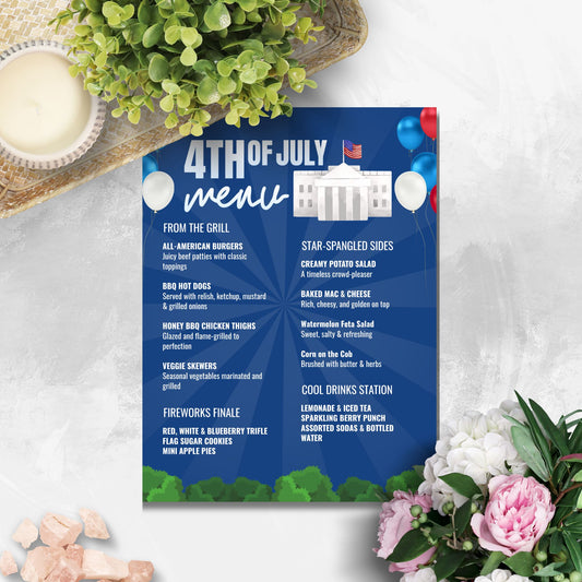 Editable 4th of July Menu Template | White House Theme | Patriotic Printable BBQ Sign | 8.5 x 11 Canva | Given Crafted Wonders