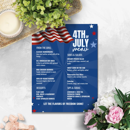 Editable 4th of July Menu Template | Patriotic Printable BBQ Menu | 8.5x11 Canva Template | Given Crafted Wonders