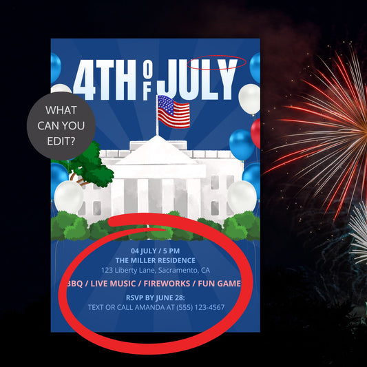 Editable White House 4th of July Invitation | Patriotic BBQ Party 5x7 Canva Template | Printable Fireworks Cookout Invite