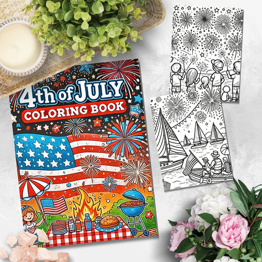 Printable 4Th Of July Coloring Pages | 4Th Of July Sheets | Six Coloring Pages For Kids | 4Th Of July Coloring Book | Pdf Instant Download