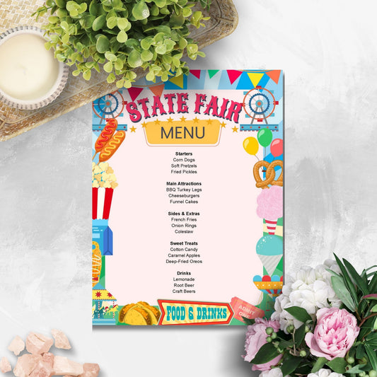 Editable State Fair Menu Template - Customizable Carnival & Festival Menu Design
