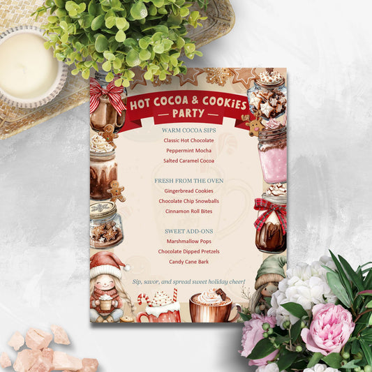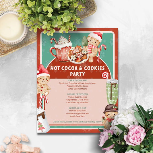 Hot Cocoa & Cookies Party Editable Menu | Cozy Holiday Dessert Bar Template | Printable 8.5x11 Word File