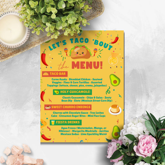 Editable Taco Fiesta Graduation Menu | Let’s Taco ’Bout the Menu | 8.5 x 11 Canva Template