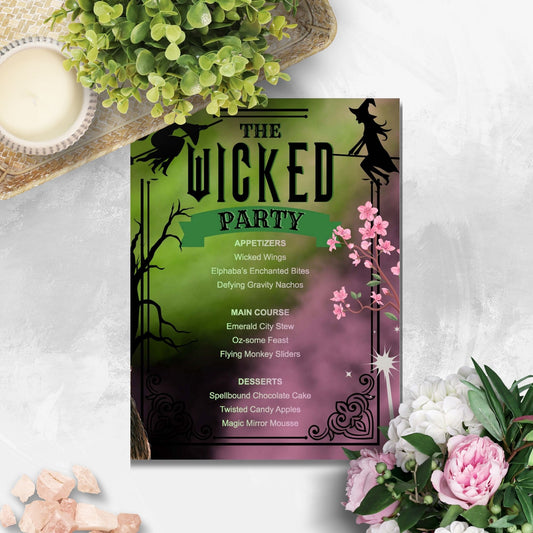Editable Wicked-Inspired Menu Template -Fantasy Party, Holiday, and Halloween Party Menu