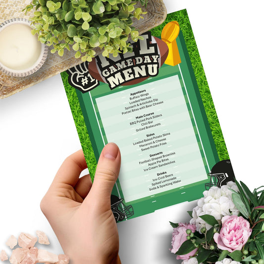 Editable NFL Game Day Menu Template - Customizable Football Party Menu Design