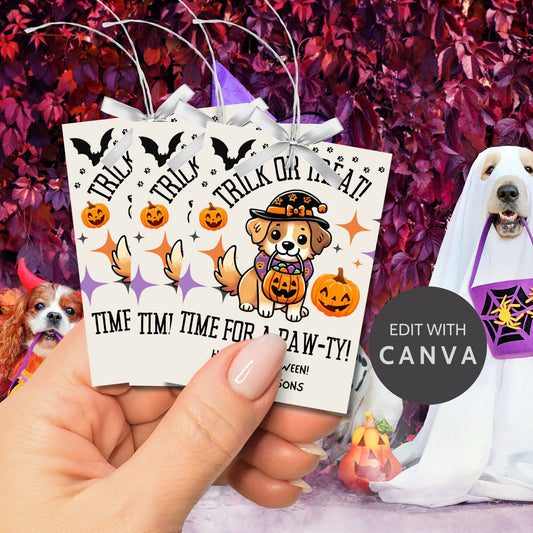 Halloween Printable & Editable Gift Tags | Dog-Themed Halloween Gift Tags | Trick or Treat Time for a Paw-ty | Given Crafted Wonders
