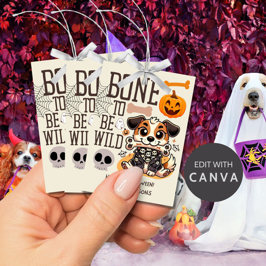Halloween Printable & Editable Gift Tags | Dog-Themed Halloween Gift Tags | Bone to Be Wild | Given Crafted Wonders