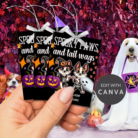 Halloween Printable & Editable Gift Tags | Dog-Themed Halloween Gift Tags | Spooky Paws and Tail Wags | Given Crafted Wonders