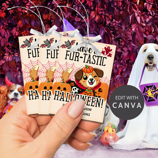 Halloween Printable & Editable Gift Tags | Dog-Themed Halloween Gift Tags | Have a Fur-tastic Halloween | Given Crafted Wonders