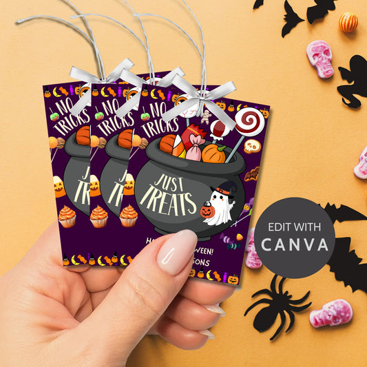 Halloween Printable & Editable Gift Tags | No Tricks Just Treats Printable & Editable Halloween Gift Tags | Given Crafted Wonders
