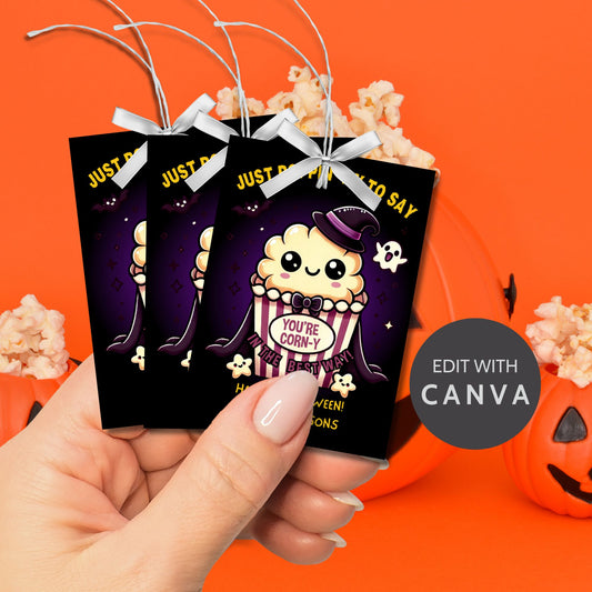 Halloween Printable & Editable Gift Tags | Just Poppin' By Popcorn Gift Tags | Given Crafted Wonders