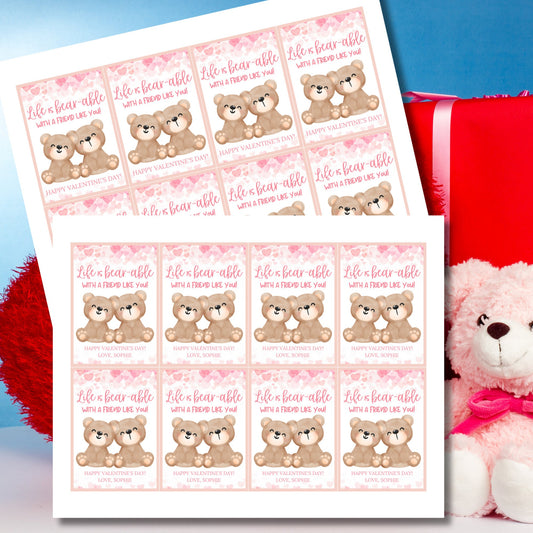 Bear Valentine Printable Tag | Stuffed Toy | Teddy Bear Valentine Sticker | Friend School Classmate Coworker | Instant Download |