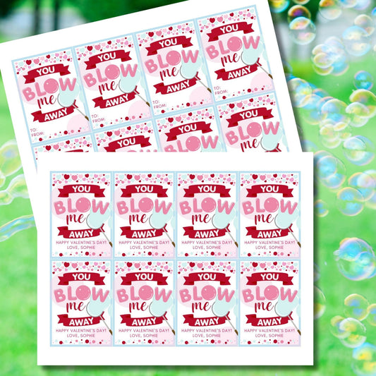 Bubbles Valentine Printable Tag | You Blow Me Away Printable Valentine | Valentines For Students From Teacher | School Valentines