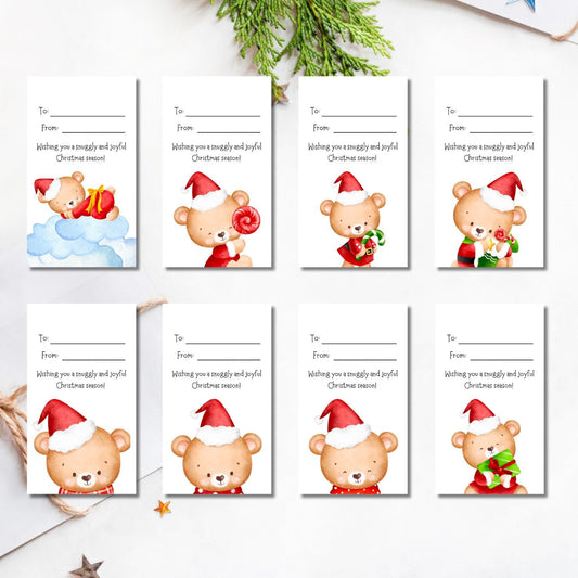 Adorable & Cuddly Christmas Bear Gift Tags, Stuffed Toy Gift, Set of 8 Printable Tags for a Cute and Festive Holiday Touch