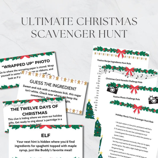 Christmas Treasure Hunt Clues | Fun At Home | Christmas Games | Scavenger Hunt Clue Cards | Printable Adults Treasure Hunt Coupons