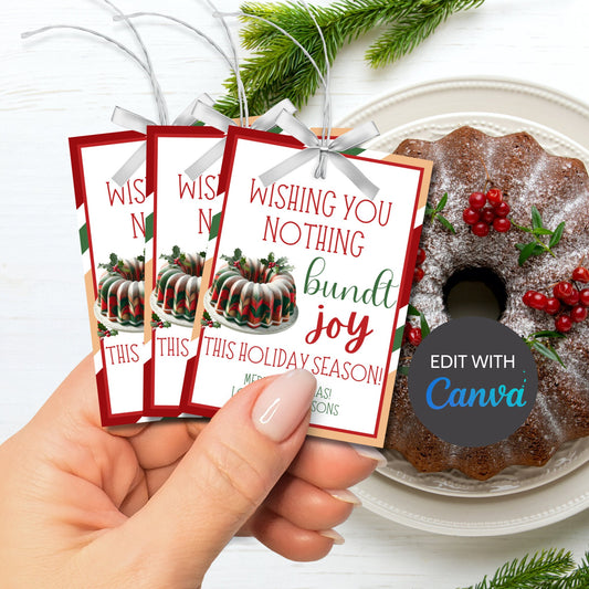 Christmas Tags Neighbor, Christmas Bundt Cake Gift, Wishing You A Bundtch Of Joy, Christmas Bundt Printable , Wishing You Nothing Bundt Joy