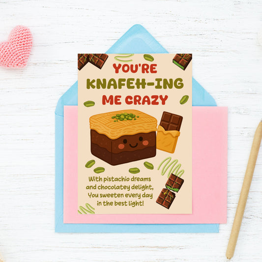 "You’re Knafehing Me Crazy" Printable Card – Dubai Chocolate Gift Idea | 5x7 PDF for Teacher Appreciation or Valentine’s Day | Given Crafted Wonders