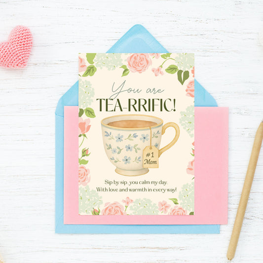 You Are Tea-rific – Printable Mother’s Day Card for Tea Lovers | 5x7 PDF, Instant Download | Cute Tea Pun | Given Crafted Wonders