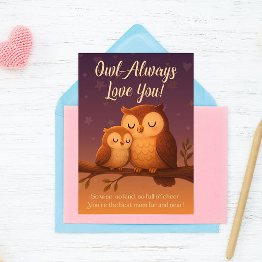 Owl Always Love You – Printable Mother’s Day Card | 5x7 PDF, Instant Download | Cute Owl Pun Card | Given Crafted Wonders