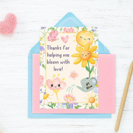 Thank You for Helping Me Bloom with Love – Printable Mother’s Day or Teacher Appreciation Card | 5x7 PDF, Instant Download | Given Crafted Wonders