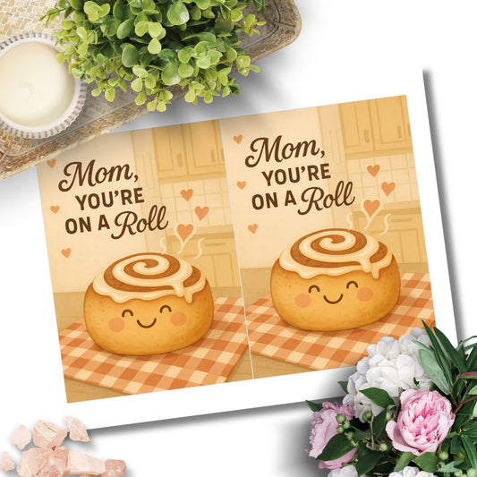 Mom, You’re On a Roll – Printable Cinnamon Roll Mother’s Day Card | 5x7 PDF, 2 Per Sheet | Instant Download | Given Crafted Wonders