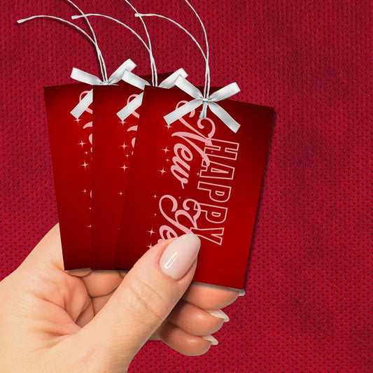 Bold Carmine Red Happy New Year Printable Gift Tags – Perfect for Celebrations | Given Crafted Wonders