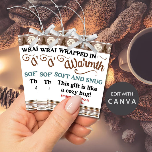 Wrapped in Warmth Gift Tags for Blankets and Cozy Gifts - Printable & Editable | Given Crafted Wonders